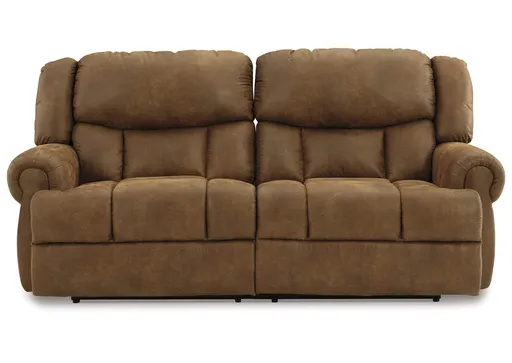 Expansive elegance. The Boothbay reclining sofa makes a sizable style statement. Its large scale enhances the luxe appearance, magnifying the beauty of richly warm brown faux leather. Polishing off the piece is an effortless reclining motion, which adds a layer of function to this masterclass in form.