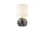 Carria Black 23" Metal Faux Marble With White Linen Shade Table Lamp pairs a black faux-marble metal base with a white linen drum shade to deliver warm, usable light for bedside or end table use. At 23" high it provides focused task light for reading while the fabric shade softens glare and the sturdy metal base keeps the lamp stable. Made in the USA, this Modern table lamp fits contemporary and natural contemporary interiors and brings practical, comfortable lighting to living spaces.