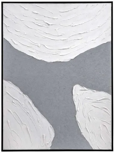 Osceola features a hand-painted canvas, elegantly framed within sleek black molding. With its bold contrast and minimalist design, this piece adds a touch of sophistication to any space, making it a timeless addition to your home decor.