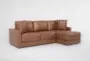 Alicia Saddle Brown Vegan Faux Leather 106" 2 Piece Sectional With Right Arm Facing Chaise | Fabric | Loose Reversible Back | Furnzy.com - Shop local furniture stores in one place