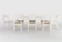 As part of a complete whole-home collection that was developed entirely by Living Spaces, the Austen White dining collection reflects a unique and thoughtful approach to design. With a refined all-American look and extensive functionality, each piece is a natural and purposeful addition to your room. A textured warm white finish accentuates oak veneer and solid wood, while elegant turned and tapered posts give height and distinction. The dining table includes 2 felt-lined drawers that store place settings and silverware, plus one 18" extension leaf that expands the surface for more guests. It's paired with coordinating woven and upholstered chairs.