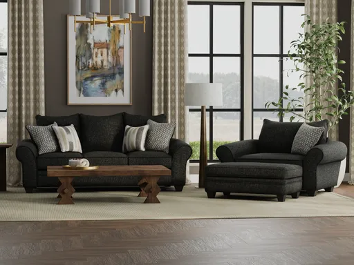 Francesca Charcoal Sofa, Chair, and Ottoman Set
