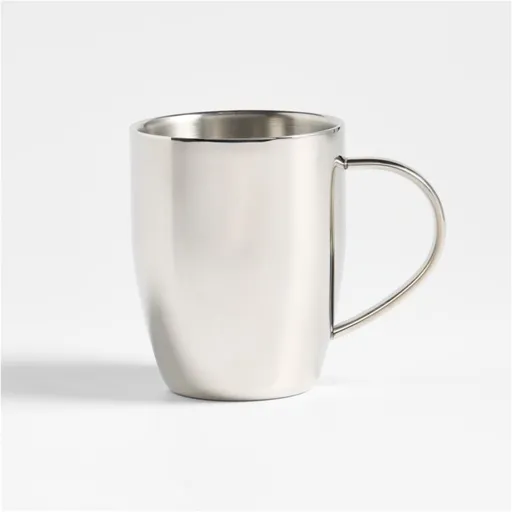 Our attractive stainless steel mug is double-walled to keep hot drinks hot and cold beverages cold. The glossy mug has sleek, modern style and looks right at home in kitchens outfitted with stainless steel appliances. For a gleaming coffee service, pair this stainless double-wall mug with our stainless steel espresso cup.