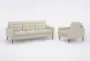 Introducing the Grayson Natural Taupe/Beige Leather 2 Piece Tufted Sofa & Arm Chair Set, a perfect addition to your living room. This mid-century modern set features a sofa and armchair, both upholstered in luxurious Alaska Ivory leather. The tufted design and straight arms add a touch of sophistication to any space.