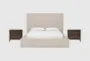 Transform your bedroom into a modern oasis with the Porto Queen Upholstered Storage 3 Piece Bedroom Set. Designed by Nate Berkus + Jeremiah Brent, this set includes two Voyage Brown 2 Drawer Nightstands and a queen-sized bed in a beautiful barley fabric. The set combines both style and functionality, making it a perfect addition to any contemporary bedroom.