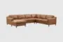 Transform your living room with the Kristi Brown 4 Piece U-Shape Leather Sectional With Left Chaise. This casual sectional features cognac brown top grain leather that offers a warm and inviting atmosphere. Perfect for family gatherings and relaxing evenings, its left-facing orientation and comfortable design make it a versatile addition to any home.