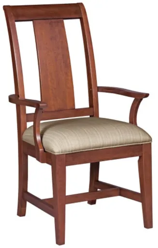 The Kincaid® Cherry Park Dupione Sand Arm Chair pairs timeless design with inviting comfort. Crafted in a warm cherry finish, it features gracefully curved arms and an upholstered seat in soft Dupione Sand fabric. Perfect for dining or accent seating, it adds warmth and elegance to any room.