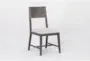 The Titan Brown + Cream Wood Upholstered Dining Side Chair with Back is a stylish addition to your dining room or kitchen. Featuring a modern design, this armless chair combines weathered grey wood with a comfortable polyester cushion. Crafted from pine, it offers durability and comfort for everyday dining.