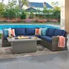 Sonoma Husk Outdoor Wicker with Cushions 5 Piece Sectional 52 x 32 in Sintered Fire Pit Table | Furnzy.com - Shop local furniture stores in one place