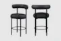 Bora Black Vegan Leather Fabric Upholstered 35.5" Counterstool With Matte Black Leg Frame Set Of 2 | Armless | Furnzy.com - Shop local furniture stores in one place
