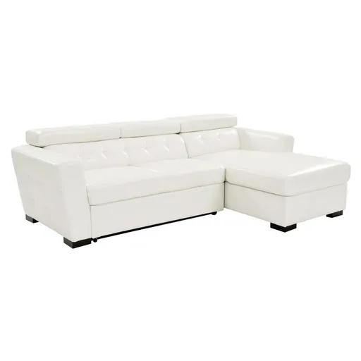 The Reeve White Sleeper w/Right Chaise is perfect for your guest room with cream white leatherette upholstery with tufted accents for a comfortable feel. Adjustable headrests and an easy to lift mechanism that converts the sofa into a bed are included for your guests’ full comfort. Hidden storage is also included in the chaise for sleeping necessities.