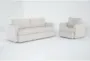 Enhance your living room with the Basil Porcelain White Fabric 2 Piece Sofa & Arm Chair Set. Featuring a modern design, this set comes in a soothing Bear Hug Porcelain color, perfect for any neutral palette. Nate Berkus + Jeremiah Brent bring you this versatile set with a loose reversible back for added comfort.