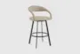 Introducing the Nord 26" Swivel Counter Height Stool, designed to bring a touch of modern style to your dining room or kitchen. This stool features a sleek matte black iron base combined with a comfortable beige faux leather seat. The eucalyptus wood adds a natural element, making it a versatile addition to any contemporary space.