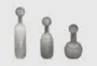 Bring a touch of modern sophistication to your home with the 18" Grey Inga Lidded Glass Bottles 3 Piece Glass Set. These decorative bottles feature a textured detailing that adds depth and character to any room. Perfect for displaying on shelves, mantels, or tables, this set is sure to enhance your decor with its neutral grey color and contemporary design.