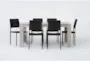 The Aysha Natural Wood 65" Dining Set with Black Rattan Chairs is a perfect addition to your dining room. Designed for 6, this classic set combines the natural beauty of wood with the contemporary touch of black rattan chairs. Enjoy family meals or entertain guests in style with this beautiful dining set.