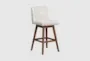 The Fenris Swivel Barstool is a perfect addition to your dining room, offering both style and functionality. Its brown oak wood finish complements the beige stain-resistant fabric, ensuring durability and easy maintenance. Designed with a modern touch, this barstool features a convenient swivel mechanism for added comfort.