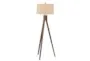Introducing the Timber Brown 62" Oak Wood Tripod Floor Lamp, a perfect addition to your rustic-themed nursery or bedroom. This standing floor lamp features a sturdy oak wood construction and a tan drum shade, blending seamlessly with natural contemporary and earthy modern decor styles. With its medium wood tone and neutral color palette, this lamp adds warmth and charm to any space.