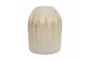 Enhance your decor with the 8" Iridescent Cream Caviar Artisan Blown Glass Vase. This modern vase features a stunning gold hue that adds a touch of sophistication to any space. The textured detailing and ribbing create a unique visual appeal, making it a perfect accent piece for your home.