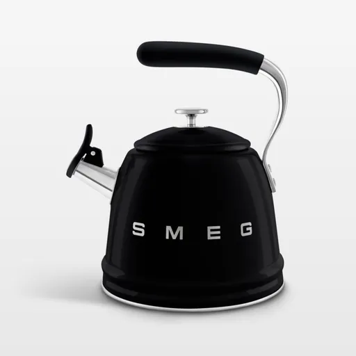 This black stovetop kettle delights with its charming curves and stainless steel accents. Suitable for use on all stovetops, the kettle sounds a delightful whistle when water reaches a boil. The silicone handle stays cool to the touch, and the conical spout pours neatly to make tea, French press or pour-over coffee, oatmeal and couscous.