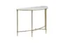The Lilly 43" Demi Lune Console Table is a traditional style piece with a curved metal frame and white marble top. Assembly is required and the table features gold-finished metal legs, white and gold color scheme, and is made with marble and plywood.