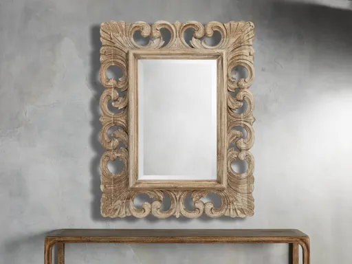 The beautifully hand-carved frames of our Porter Mirrors are crafted by Indonesian artisans from solid teak wood. Beveled glass complemented by hand-applied finishes and curved details create a rustic, elegant aesthetic in any space.