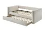 The Kerrington White Twin Upholstered Daybed with Pull-Out Twin Trundle is a versatile and stylish addition to any bedroom or kids' room. Its casual design and soft white faux fur upholstery create a cozy and inviting atmosphere. The daybed features a pull-out twin trundle, providing extra sleeping space for guests or siblings.