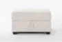 The Mathers Cream Beige Fabric 34" Rectangle Storage Ottoman is a versatile and stylish addition to any living room. Upholstered in soft marshal cream fabric, this ottoman provides a comfortable seating option or a convenient footrest. Its built-in storage compartment offers a practical solution for keeping your space tidy and organized.