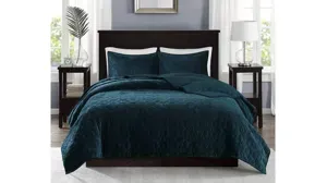 The Harper Coverlet Set is perfect for those seeking a casual and comfortable update to their bedroom. The velvet coverlet can act as the perfect layering piece, adding a decorative element of soft texture to your bedding ensemble with its gorgeous quilted design. The rich teal color and the geometric stitch pattern, however, makes the coverlet charming enough to stand alone on your top of bed as an alternative to your comforter with options to reverse.