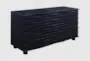 The Artemis 59" Server is a modern piece of furniture designed for the dining room, made of black Asian hardwood with shelves and doors for ample storage space. Its dovetail construction and metal extension glide drawers can hold up to 50 lbs of weight, making it a sturdy and stylish addition to any home.