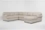 Hampstead II Beige Linen 140" 2 Piece Sectional With Right Arm Facing Queen Sleeper Sofa Chaise | Fabric | Rolled Arms