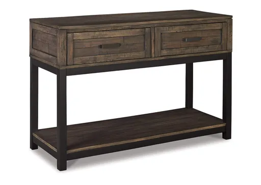 Combining a two-tone finish with a gently distressed texture produces one very distinctive sofa table. Whether your style is modern farmhouse or urban industrial, the Johurst sofa table is the perfect accent for your rustic retreat.