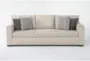 The Mercer Foam IV 93" Grey Performance Fabric Sofa is perfect for your living room, offering both comfort and durability. This modern sofa features loose, reversible back cushions and track arms, making it a versatile and practical addition to any home. Upholstered in 100% polyester, this oversized sofa is designed to stand up to high-traffic areas while maintaining its soft, inviting texture.