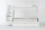 Transform your child's room with the Luca White Twin Over Full Wood Bunk Bed with Stairway & Twin Trundle. This contemporary bunk bed offers a practical solution for maximizing space and storage in a stylish, white finish. Made from solid pine and MDF, it ensures durability and longevity for years to come.