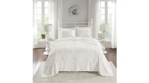 Give your bedroom a soft and cozy look with the Sabrina 3-pc. Full/ Queen Bedspread Set. This oversized white bedspread features a classic medallion design that adds dimension and charm to the top of the bed, and is unfilled for lightweight coverage. Matching shams repeat the pattern seen on top of the bed, for a beautiful coordinated look. Made from cotton, this cottage-inspired bedspread is machine washable to make cleaning a breeze.