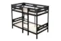 The Finnlee Black Twin Over Twin Wood Bunk Bed is a stylish and practical addition to any kids' bedroom. Its modern design and black finish make it a versatile choice for various decor styles. Constructed from wood, including pine and plywood, this bunk bed ensures durability and stability.