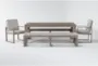 Malaga Grey II Outdoor Wood Rectangle Metal 80" Dining Table | Armchairs | 2 Benches Set For 6 | Eucalyptus