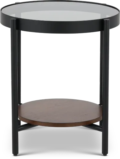 Bring classic mid-century modern design easily into your living room with this end table from our Felix collection! The smoked glass tabletop is accented by a lower wood level and black metal framing. This sleek design is sure to look great for years to come.
