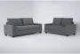 The Reid Grey Fabric 2 Piece Sofa and Loveseat Set adds contemporary comfort to your living room. This set includes a sofa and loveseat, both upholstered in soft fabric and featuring firm foam cushions for optimal support. The track arms and tapered legs contribute to the sleek, modern design, making it a perfect addition to any home.