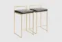 Enhance your dining or kitchen space with the Ian Black Metal Performance Faux Leather Low Back Counter Height Stool Set of 2. These modern, armless stools offer a sleek design and comfortable seating for your food prep and serving areas. The faux leather upholstery and sturdy metal frame ensure durability and easy maintenance.