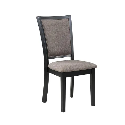 The Potomac Wood Dining Chairs, available as a set of two, are expertly crafted from solid Rubberwood, combining strength with natural beauty for lasting durability and timeless appeal. The deep black finish of the frames contrasts beautifully with the soft, neutral-toned upholstery, made from 100% polyester, accentuating the chairs' sleek, modern lines. This sophisticated pairing ensures that the chairs not only stand out as stylish pieces but also seamlessly enhance a variety of interior decor styles. Designed with a distinctive, modern silhouette, these chairs offer both aesthetic appeal and ergonomic support, featuring gracefully curved backrests that provide comfort during extended meals. The intricate lattice pattern on the chair backs adds a touch of visual intrigue, blending functionality with decorative charm. Thoughtfully cushioned, the upholstered backs and seats offer a plush, comfortable experience, making these chairs a perfect choice for any dining space, whether for everyday use or special occasions.