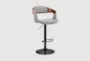 The Hovan Adjustable Gray Faux Leather and Walnut Wood Bar Stool with Black Base is a stylish and versatile addition to any modern home. Its sleek design combines gray faux leather with walnut wood accents, creating a sophisticated look that complements a variety of decor styles. The stool features a 360-degree swivel function for maximum mobility and an adjustable height to suit your needs.