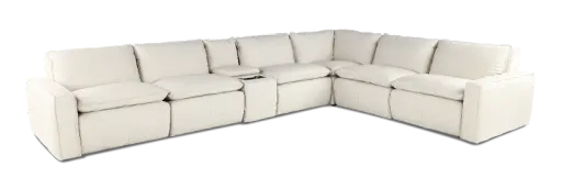 Elevate the look and feel of your living spaces with the modern and inviting Oslo collection. Beautifully crafted, this 7-piece sectional features a chic silhouette that is artfully covered in a neutral and breezy pebble-hued top-grain leather. A convenient console provides handy hidden storage and USB charging. Plush cushions offer softness and support, while generous proportions make it an ideal spot for gathering and unwinding. Includes left-facing chair, 3 armless chairs, storage console with USB charging, corner piece, and right-facing chair.