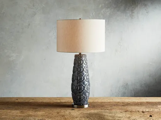 Featuring an elongated design and elegantly crafted detailing, our Laurel Table Lamp is bold in its appeal yet subtle in detail. Laurel’s hand-sculpted, medallion-patterned ceramic is glazed for added sheen evoking one-of-a-kind character.