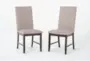 The Pollie Brown + Grey Fabric Upholstered Dining Side Chair Set Of 2 with Back and armless design is perfect for your dining room or kitchen. The combination of brown and grey fabric upholstery with solid rubberwood construction ensures durability and comfort. These chairs come with cushions for added comfort.