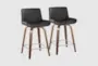Enhance your dining or kitchen space with the Santi 24" Midcentury Modern Fixedheight Counter Height Stool With Swivel in Walnut Wood and Grey Faux Leather. This set of 2 stools boasts a stylish Mid-Century Modern design that fits perfectly with contemporary interiors. The combination of walnut wood and grey faux leather offers both comfort and durability, making these stools a great addition to any high-traffic area.