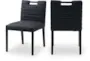 Analee Black Vegan Dining Chair Set of 2 offers comfort-forward seating for the dining room with black vegan leather upholstery and a channel-stitched ladderback. Each chair is upholstered in black vegan leather over a padded seat that supports everyday meals and conversation. Sturdy rubberwood legs provide reliable support while the compact profile makes the set simple to arrange in both intimate and open dining spaces.