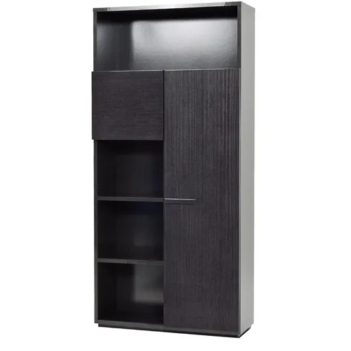 The superior Italian design of the Valery Bookcase creates a smooth glossy look in your home office with gray engineered wood construction and koto veneers. Wooden shelves and open display space allow you to store all your home office necessities and gorgeous accessories.