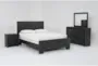 Elevate your sleeping space with the Derrie Black Queen 4 Piece Bedroom Set. This modern bedroom set is designed in a sleek charcoal color and is made from durable melamine. Its melamine construction ensures longevity and easy maintenance, making it a perfect addition to any contemporary bedroom.