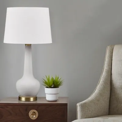 Radiate charm with the 510 Design Zazie Table Lamp. Its genie-style design, blending a refined ceramic base and a gold metal accent, embodies a seamless transitional style. The cream tapered drum shade emits a warm glow, adding sophistication and versatility. Featuring an on/off switch and a 60" cord, this plug-in lamp comes with a 9W LED bulb for instant ambiance. Its low-maintenance design ensures enduring elegance and a perfect addition for timeless allure in any space.
