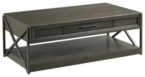 The Simon collection uses white oak veneers in a rich French Press finish with metal x motif end panels in an Old Iron finish. This table design features drawers for storage shelving and mitered face framing for a clean yet casual transitional box on stand look.